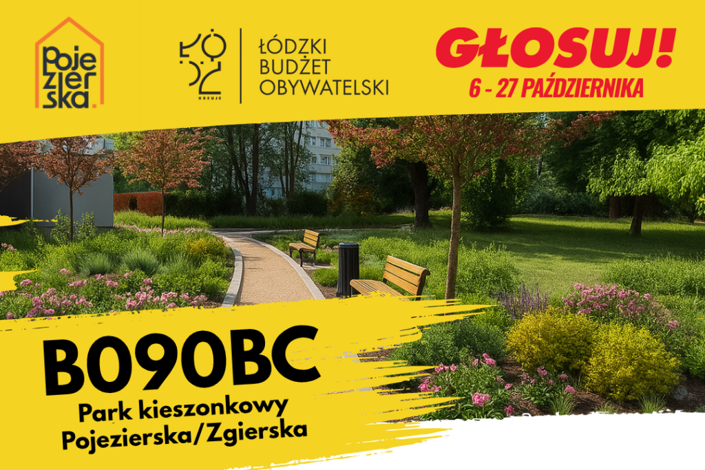 Projekt zakłada utworzenie parku kieszonkowego w północno-zachodnim narożniku skrzyżowania ulic Pojezierska i Zgierska, na obecnie zaniedbanym terenie zielonym, w obszarze działek: B26-407/16; B26-407/10; B26-407/17; B26-407/18; B26-407/30. Obszar ten, choć chętnie uczęszczany przez mieszkańców, nie posiada żadnej infrastruktury rekreacyjnej ani uporządkowanej zieleni. Inwestycja ma na celu przemianę tego miejsca w estetyczną i przyjazną przestrzeń publiczną. W ramach projektu przewidziano: Budowę parkowych alejek w miejscu wydeptanych, dzikich ścieżek, Ustawienie 4 ławek parkowych, Nasadzenie krzewów ozdobnych i bylin, Dosadzenie drzew kwitnących uzupełniających istniejące zadrzewienie, Projekt odpowiada na potrzeby mieszkańców osiedla, którzy od lat zgłaszają potrzebę uporządkowania i zagospodarowania tej przestrzeni. Zielone przestrzenie kieszonkowe pozytywnie wpływają na jakość życia, zwiększają estetykę otoczenia, zachęcają do spędzania czasu na świeżym powietrzu i integrują lokalną społeczność. Napis przestrzenny będzie nie tylko elementem dekoracyjnym, ale również symbolicznym wyróżnikiem osiedla.